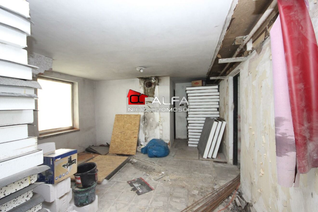 Dom przyszykowany do kapitalnego remontu. Doprowadzone zostały już nowe przyłącza: energii elektrycznej, wodne oraz kanalizacyjne. Dach po remoncie (kryty papą)